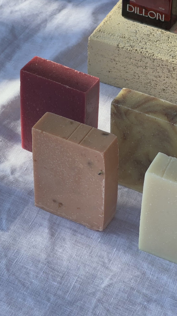 • A grounding Lavenderwood Soap Bar with nourishing Pink Clay and calming notes of Lavender and Rosewood.